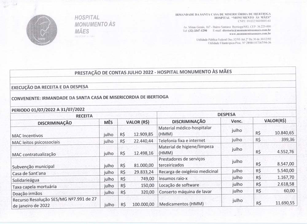 Confira abaixo a Prestação de Contas do Hospital Monumento às Mães referente à Julho de 2022. Clique nas imagens para ampliar.