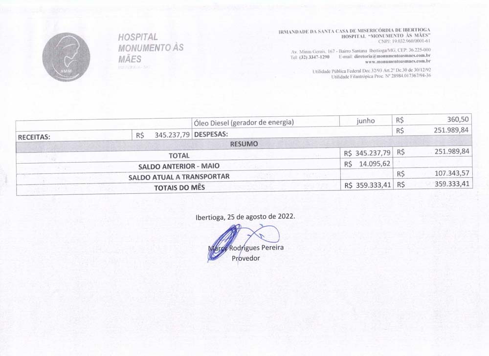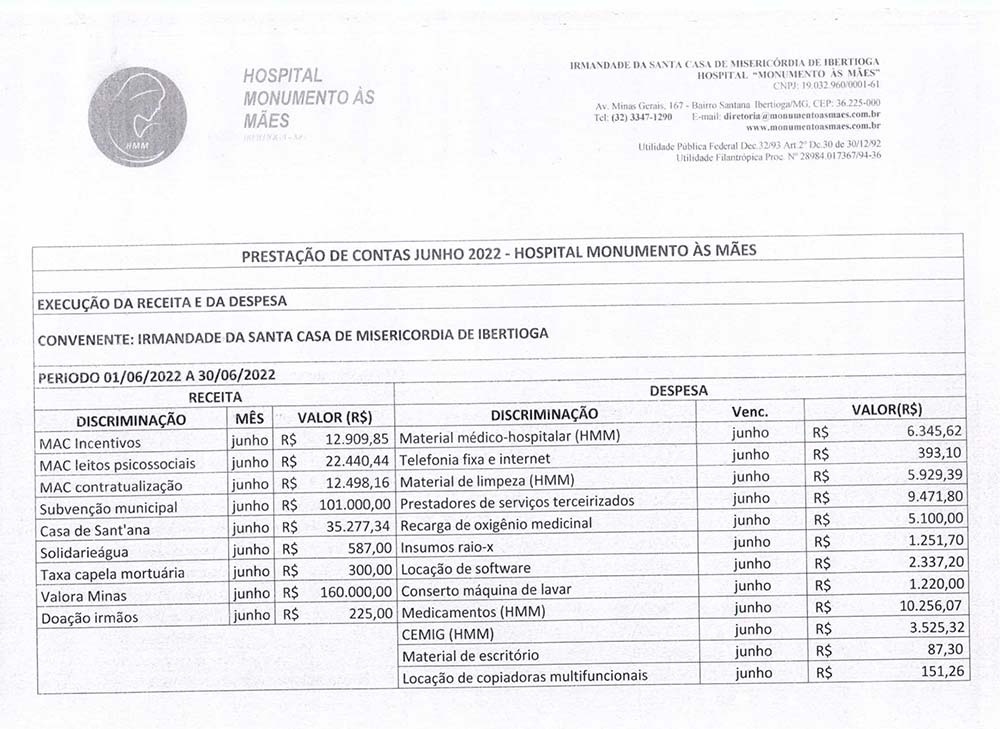 Confira abaixo a Prestação de Contas do Hospital Monumento às Mães referente à Junho de 2022. Clique nas imagens para ampliar.